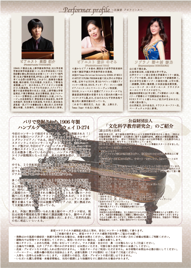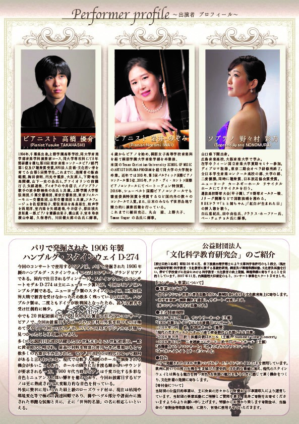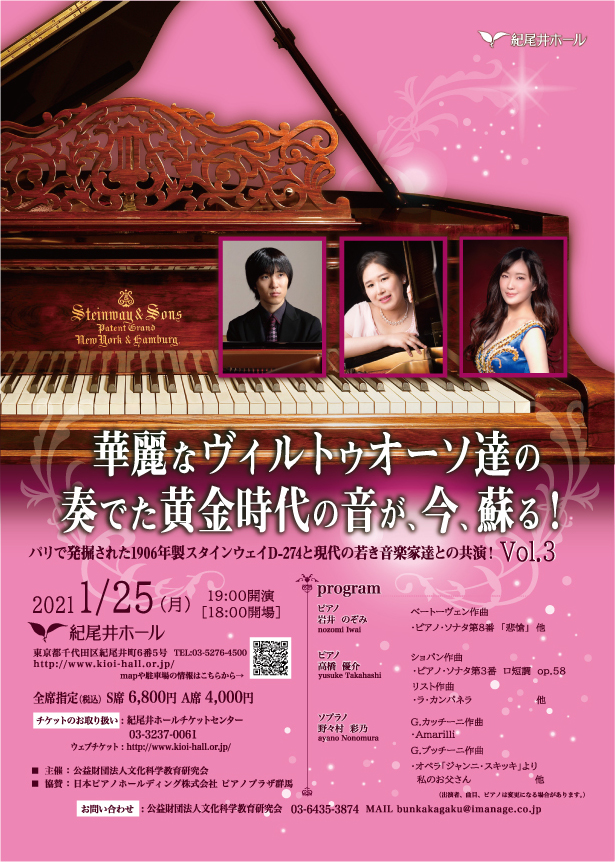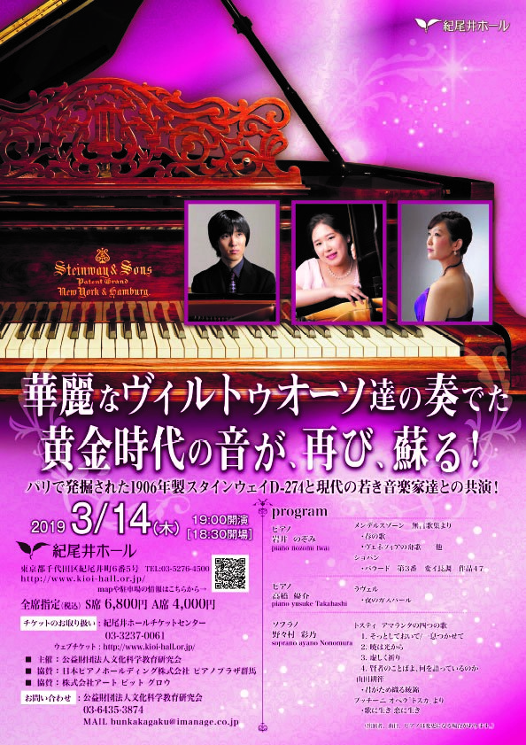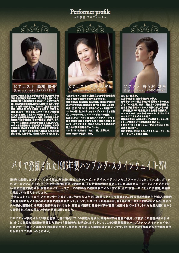 ~パリで発掘された1906年製スタインウェイD-274と現代の若き音楽家達との共演!~