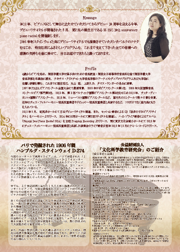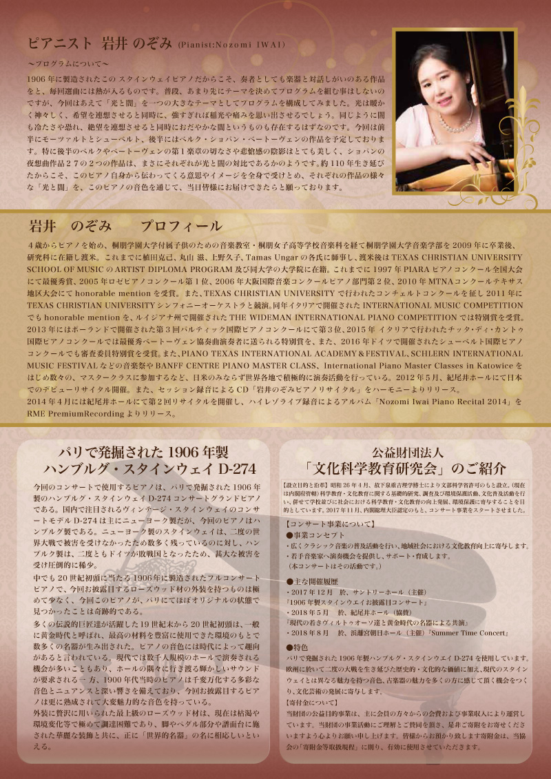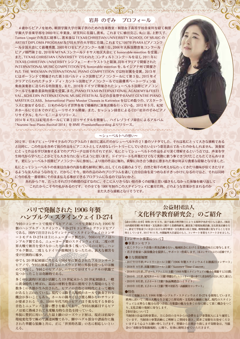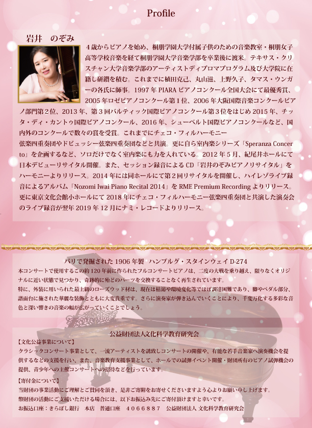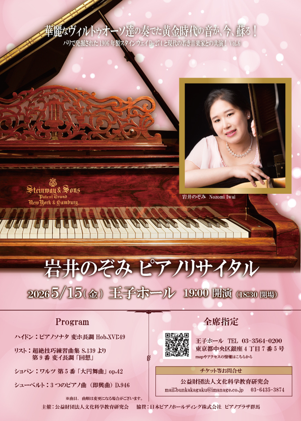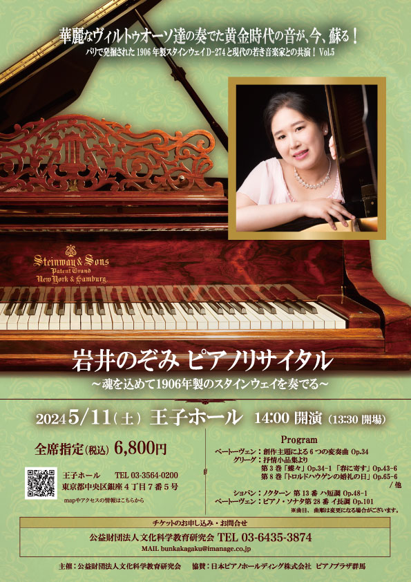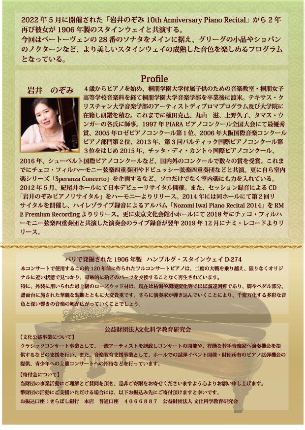 ● 岩井のぞみピアノリサイタル ~魂を込めて1906年製のスタインウェイを奏でる~