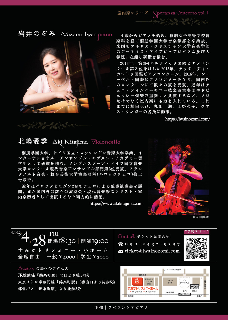 ● 岩井のぞみ 室内楽シリーズ ~Speranza Concerto vol.1~