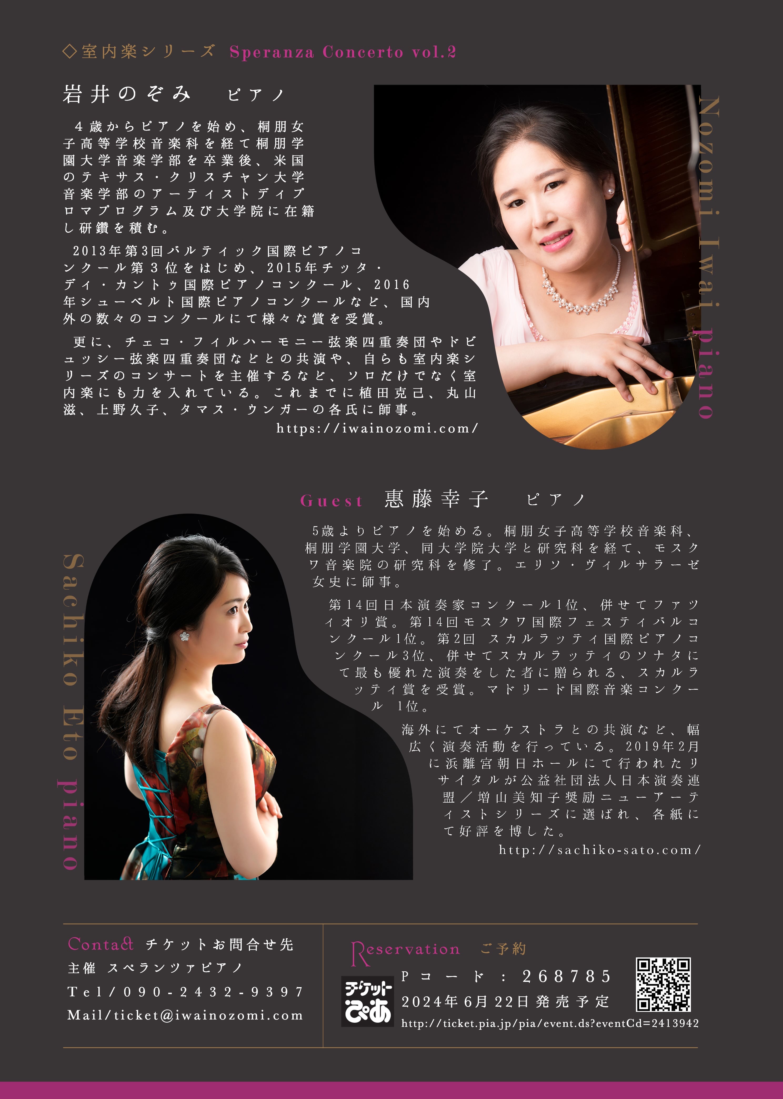 ● 岩井のぞみ 室内楽シリーズ ~Speranza Concerto vol.2~