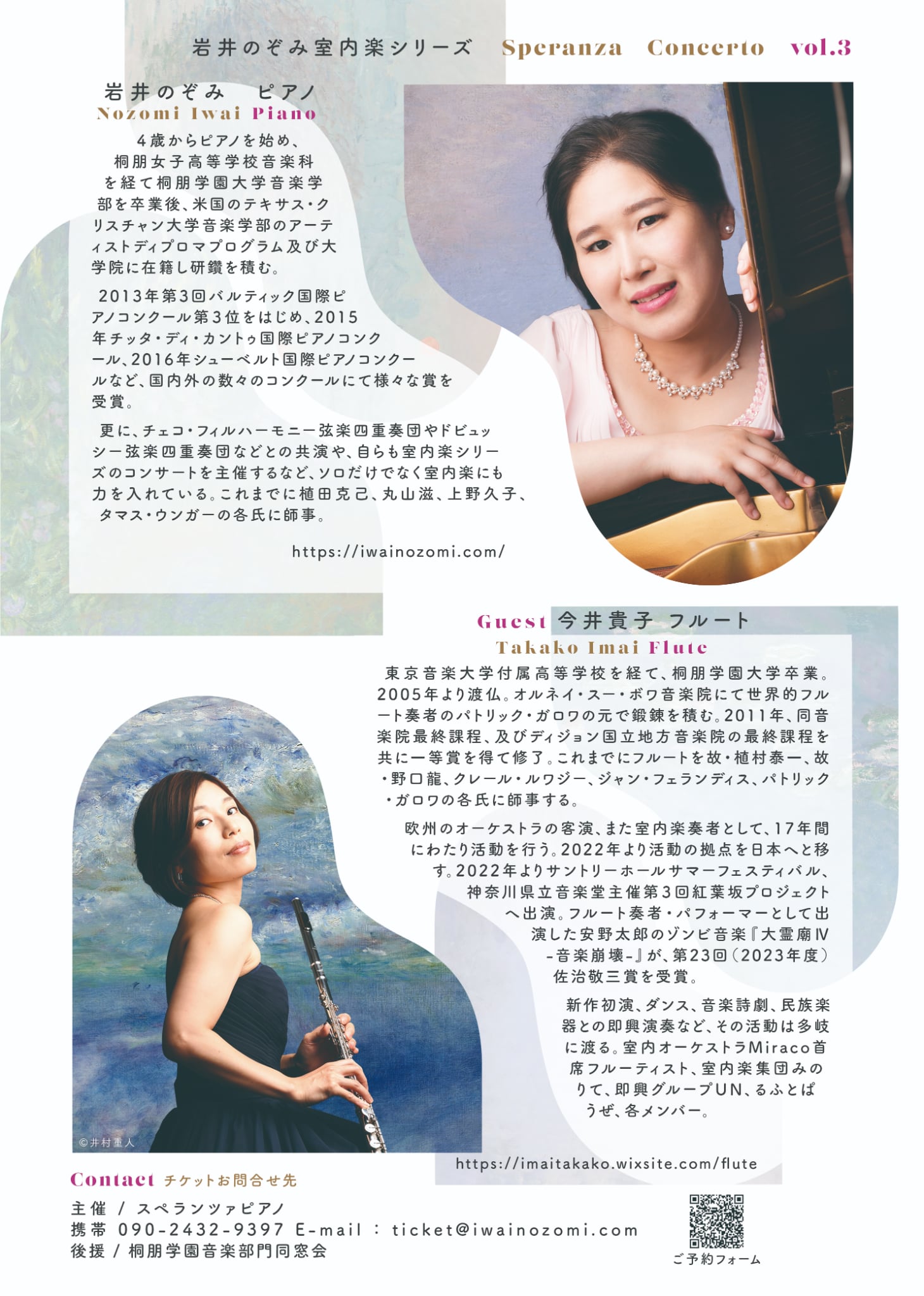 ● 岩井のぞみ 室内楽シリーズ ~Speranza Concerto vol.3~